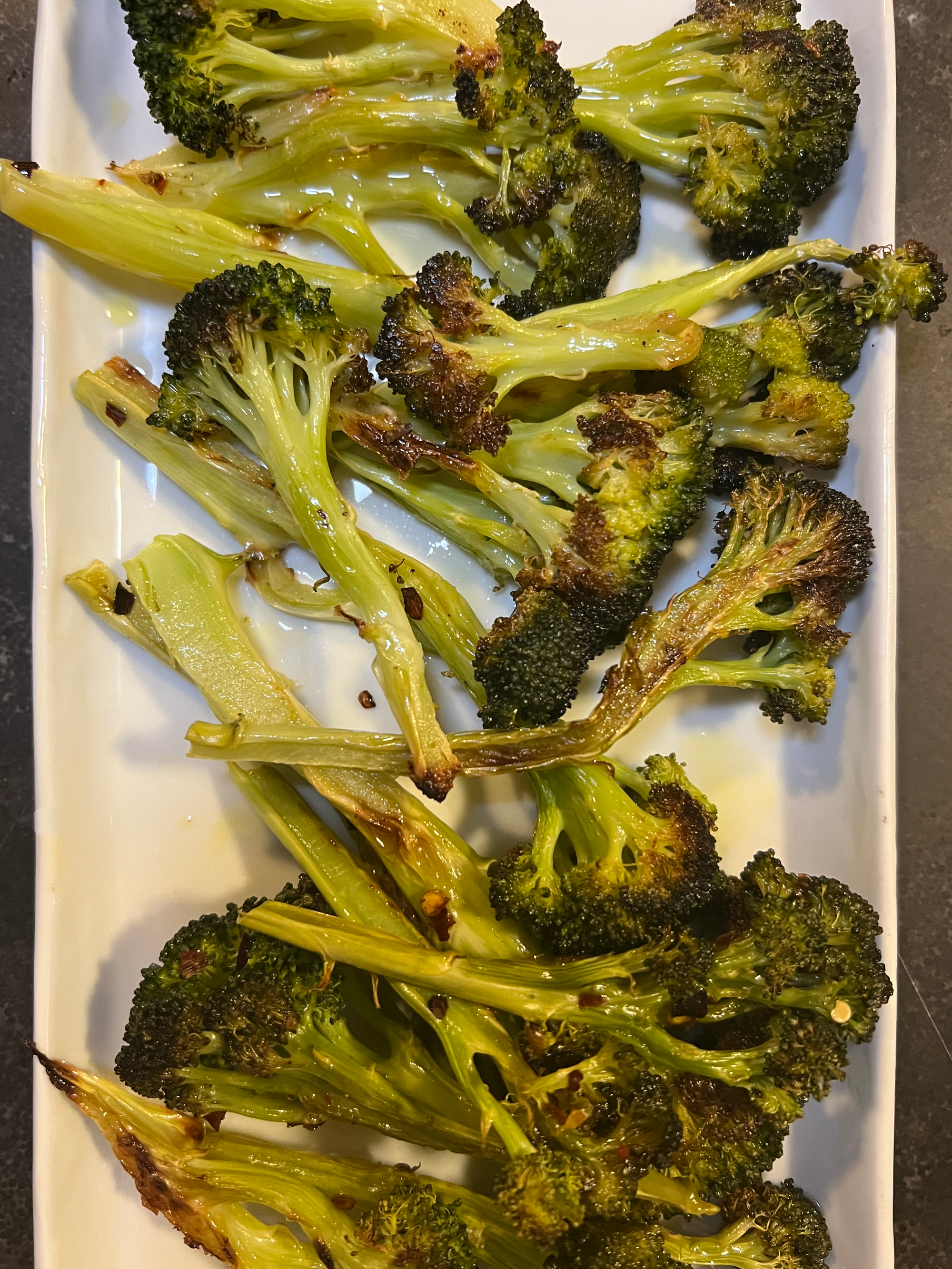 Drizzle with olive oil, sprinkle red pepper flakes.