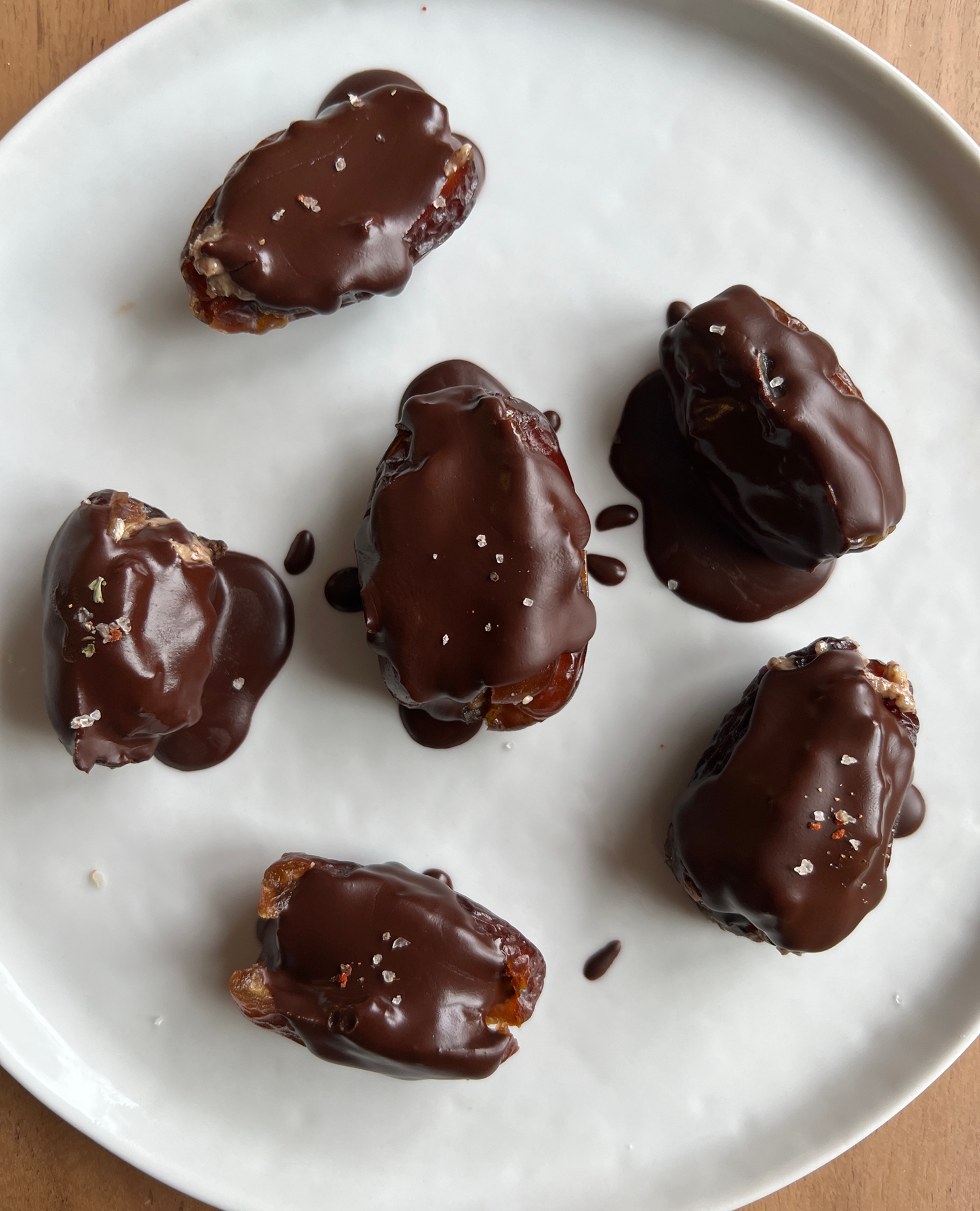 Melt chocolate chips and coconut oil. Drizzle over the dates.