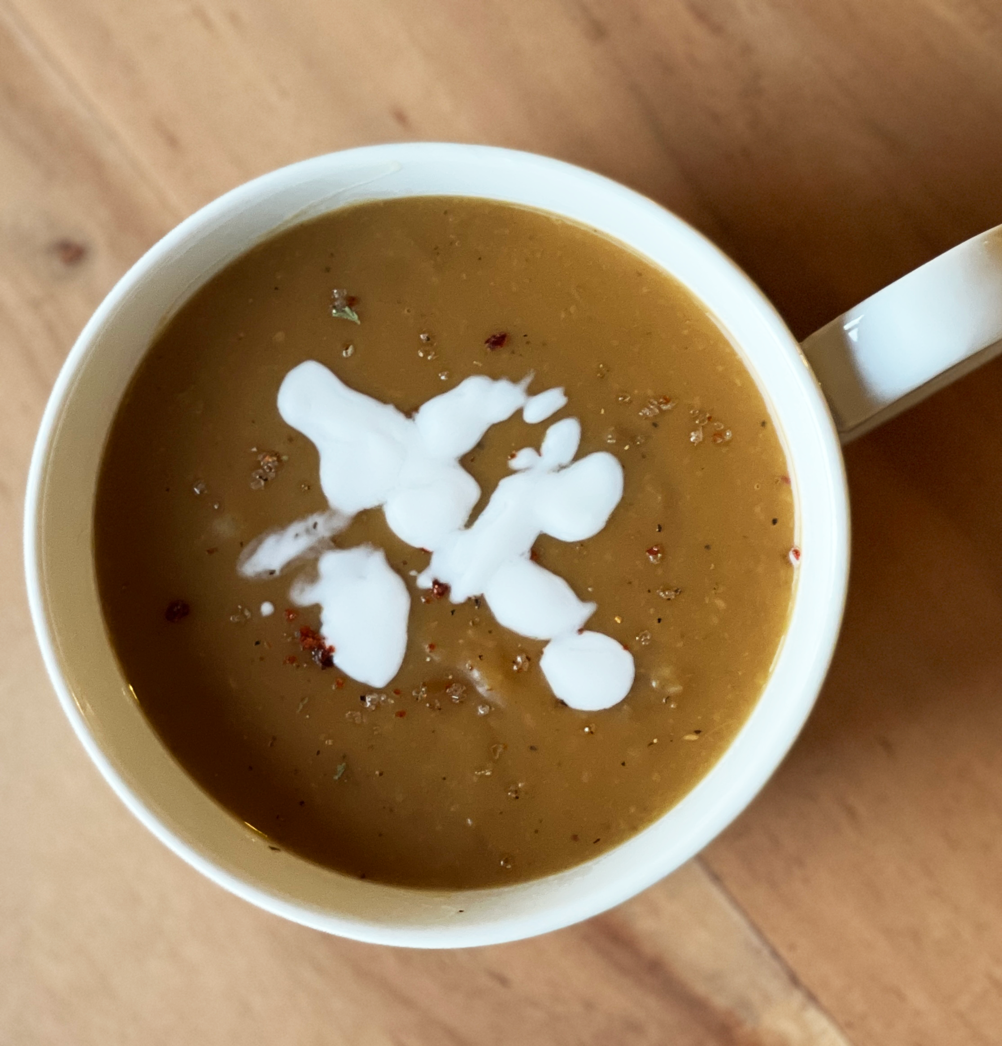 Heat a large pot over medium-low heat and add the coconut oil. Stir in the onion and cook, stirring often, until it begins to caramelize and get golden brown, about 15 to 20 minutes.